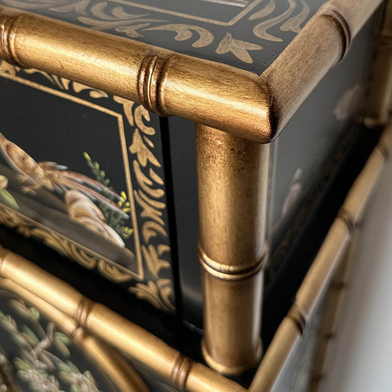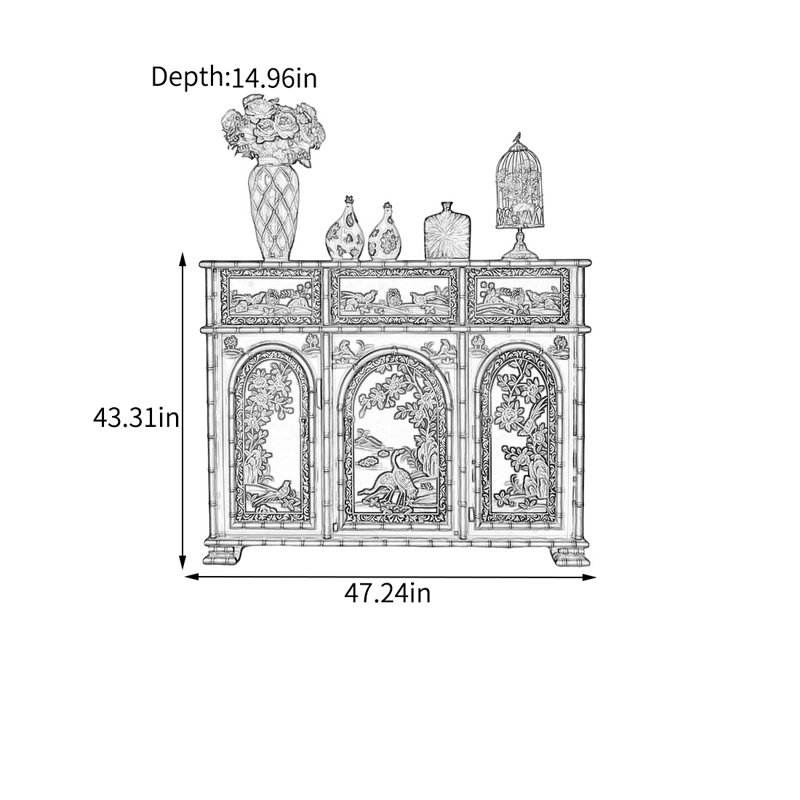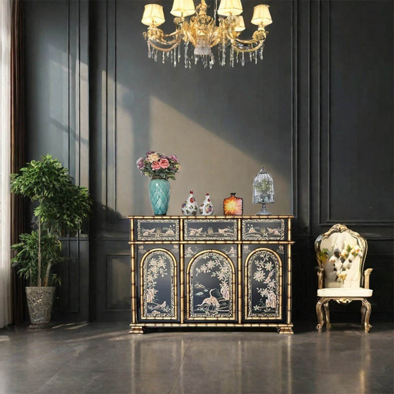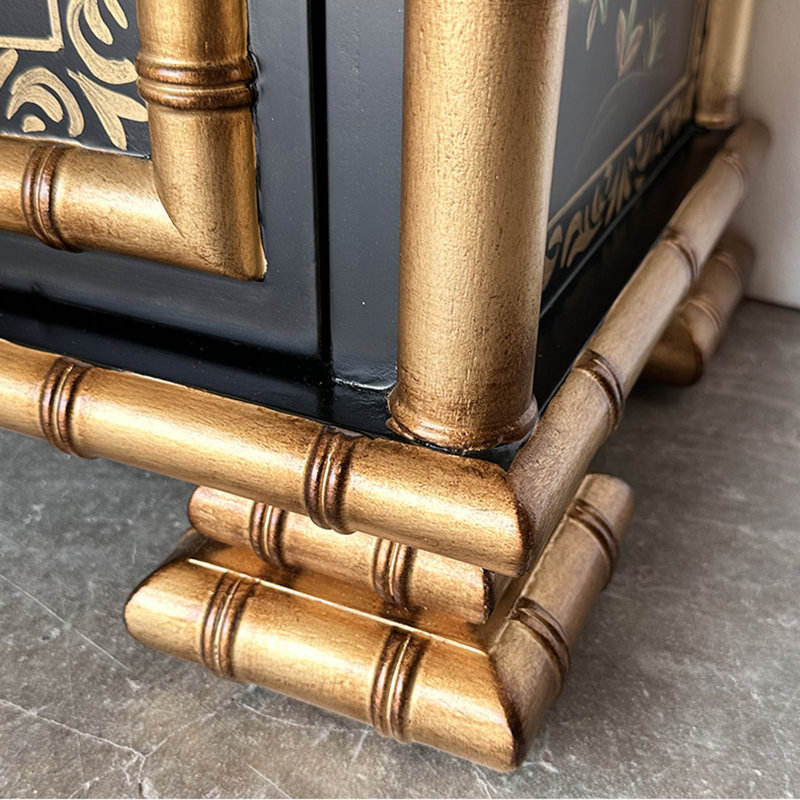 Modern Luxury Black and Gold Bamboo-Style Sideboard Cabinet Solid Wood for Home Bar Dining Room or Living Room