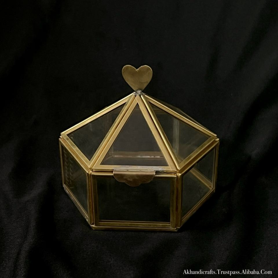 Modern Luxury Brass Plain Christmas Glass Jewelry Box with Snap Closure for Jewelry Storage and Organization