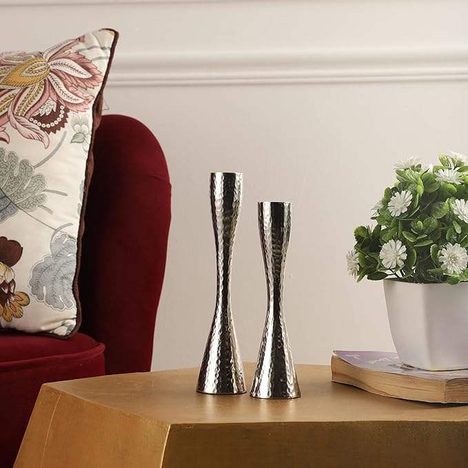 Modern Luxury Christmas Handmade Embossing Printing Aluminum Hammered Design Fancy Candle Holder Stand Table Centerpiece Home