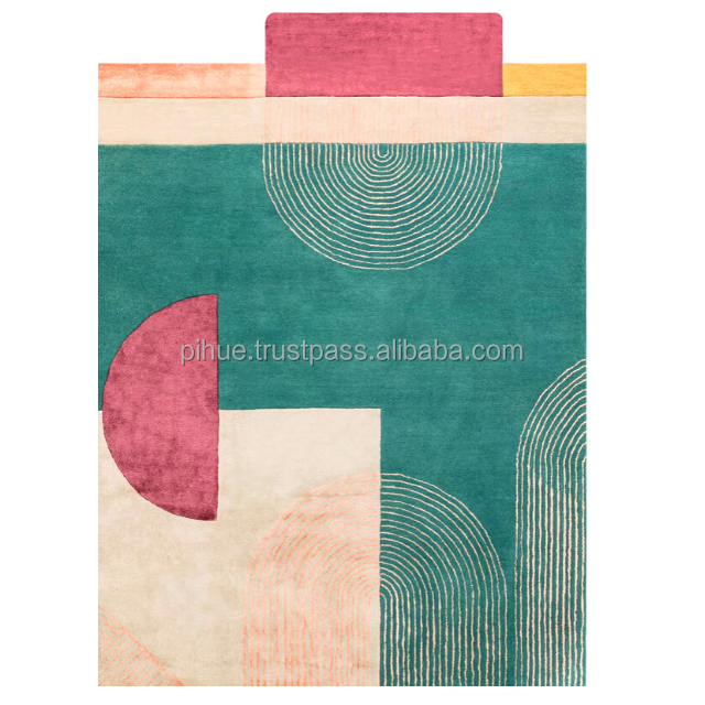Modern Luxury Custom Size Wool/Silk Hand Tufted Geometric Pattern PET Friendly Area Rugs & Sets for Living Room Prayer Use
