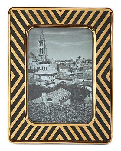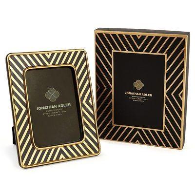 Modern Luxury Designer Black and Gold Geometric Photo Frame with Diagonal Stripe Design for Minimalist Home Tabletop Decoration