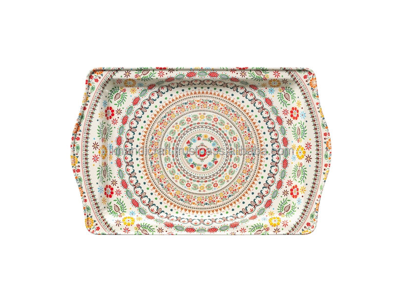 Modern Luxury Large Size Customisable Mandela Design Stainless Steel Tray Durable Serving Tray for Daily Use Private Labelling