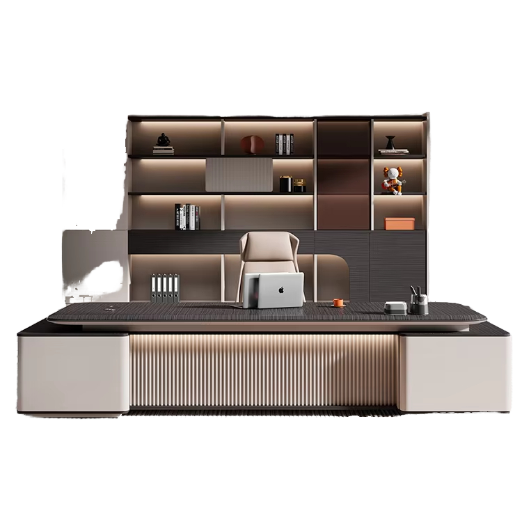 Modern Luxury Executive Office Desk High-End CEO Table Convertible Extendable Wall Mount Side Drawer Cabinet Wood Panel