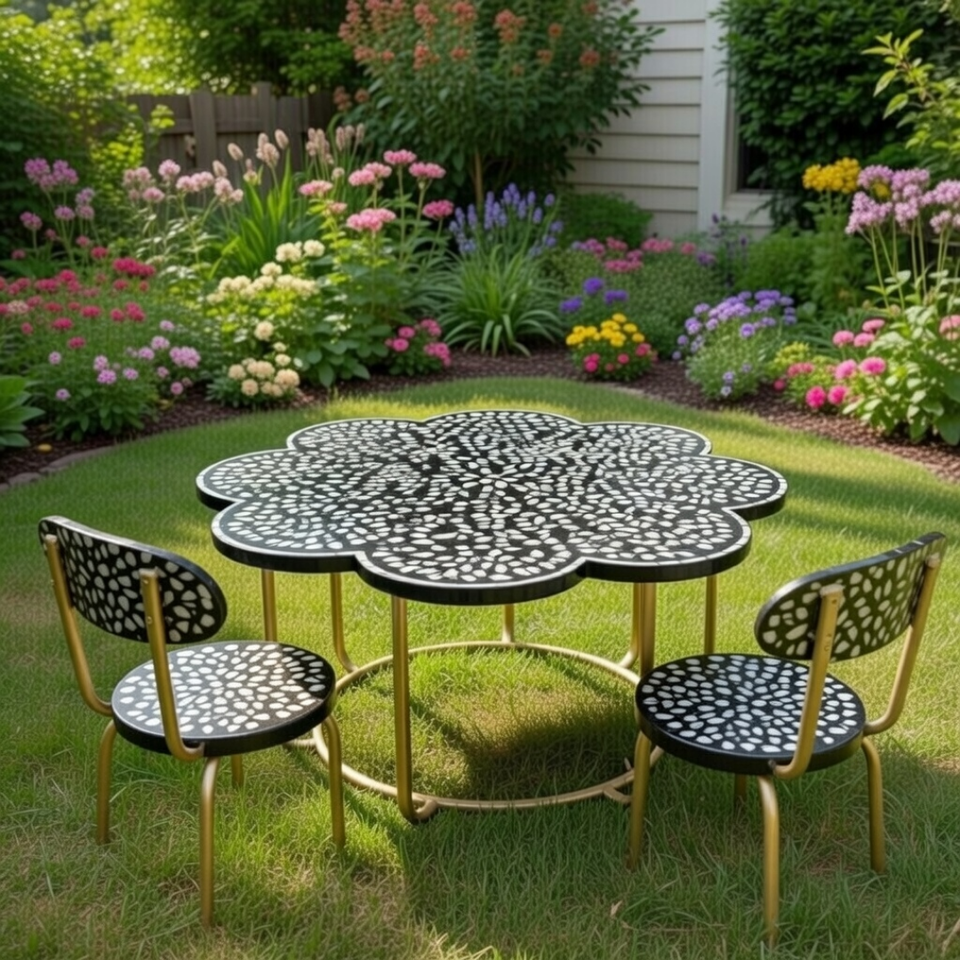 Modern Luxury Floral Bone Inlay Coffee Table Round Mother of Pearl Inlay Center Table with Gold Brass Base for Living Room