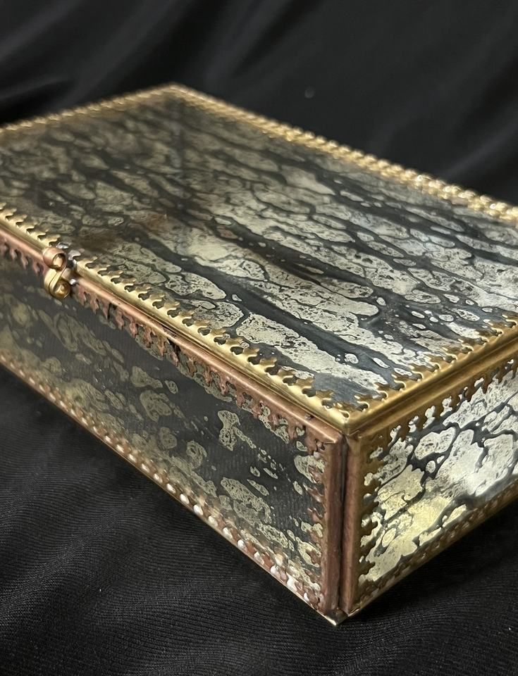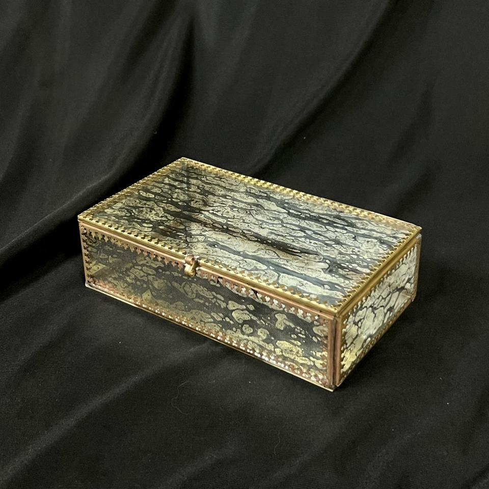 2025 Hot Selling Luxury Brass Jewelry Organizer Box Designer Rim Mercury Coated Glass Storage Decor Rectangle Shape Square Clasp