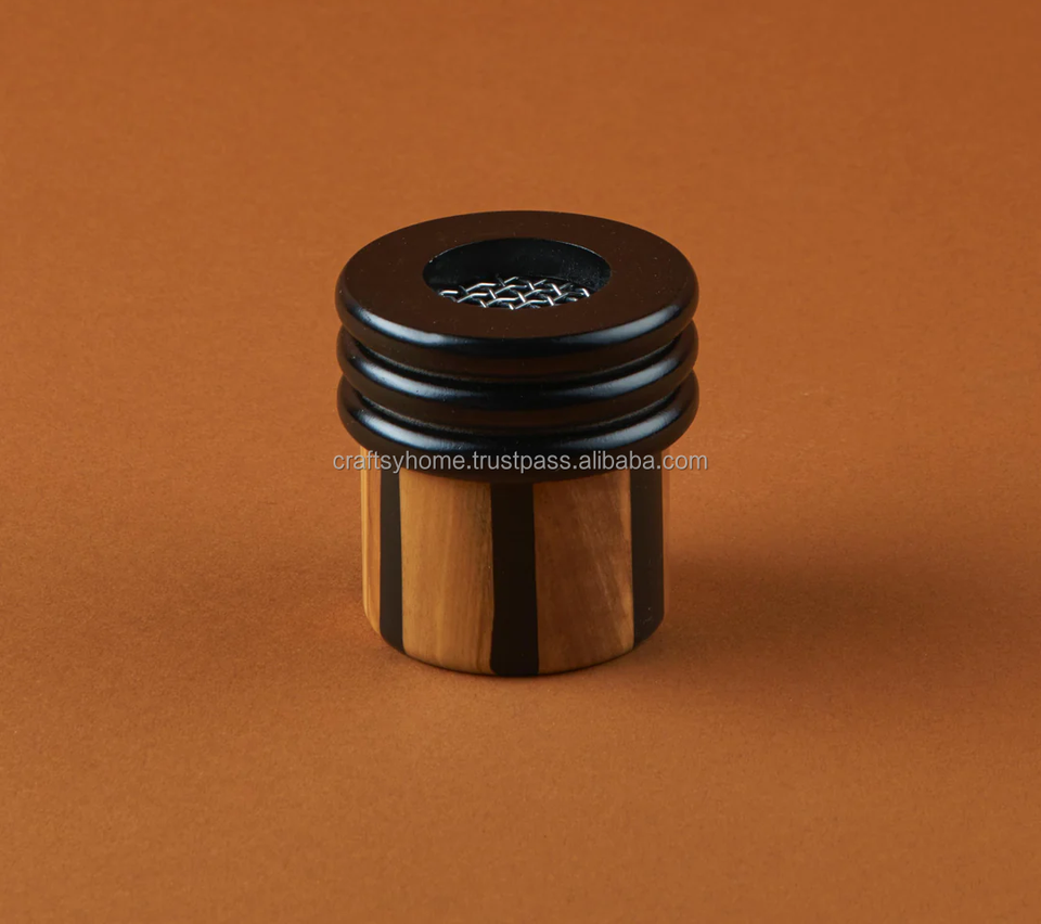 Modern Luxury Handmade Indian Wooden Mubkhar Incense Burner Custom Logo Polished Wood Brass Oud Burner for Ramadan Bakhoor
