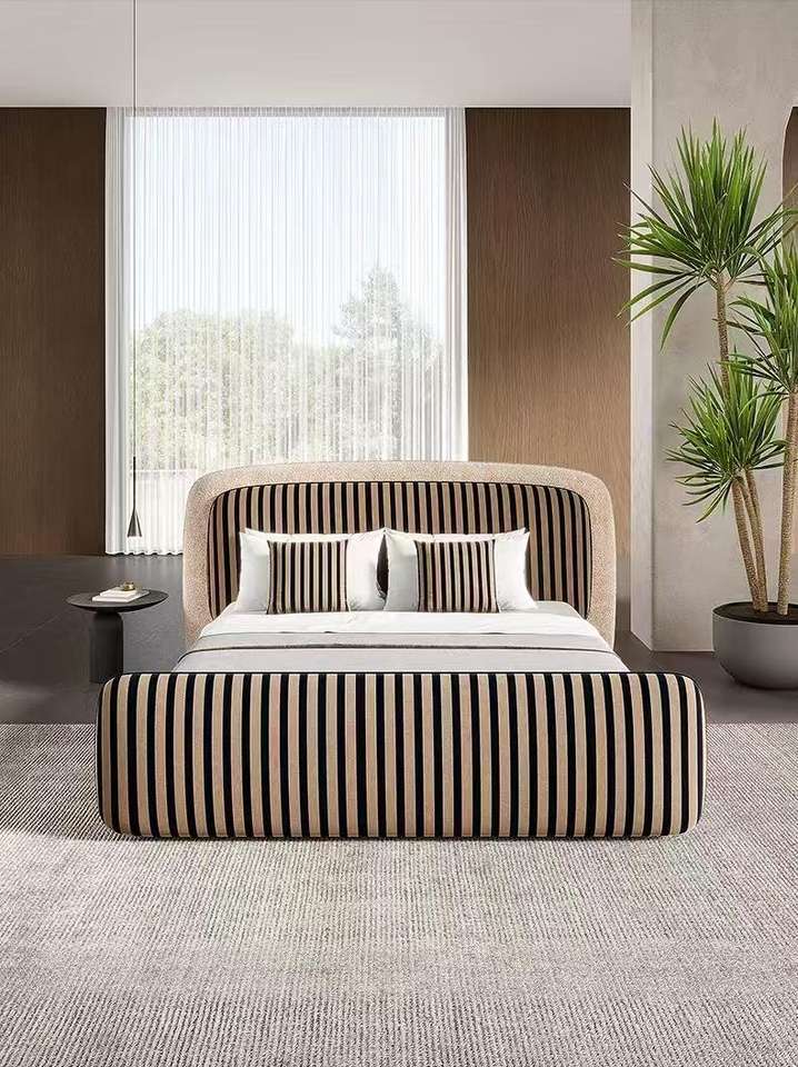 Modern Luxury Hotel Bedroom Bed Widescreen Double Soft Bed with Unique Queen Size Headboard Upholstered Fabric Beds King Size