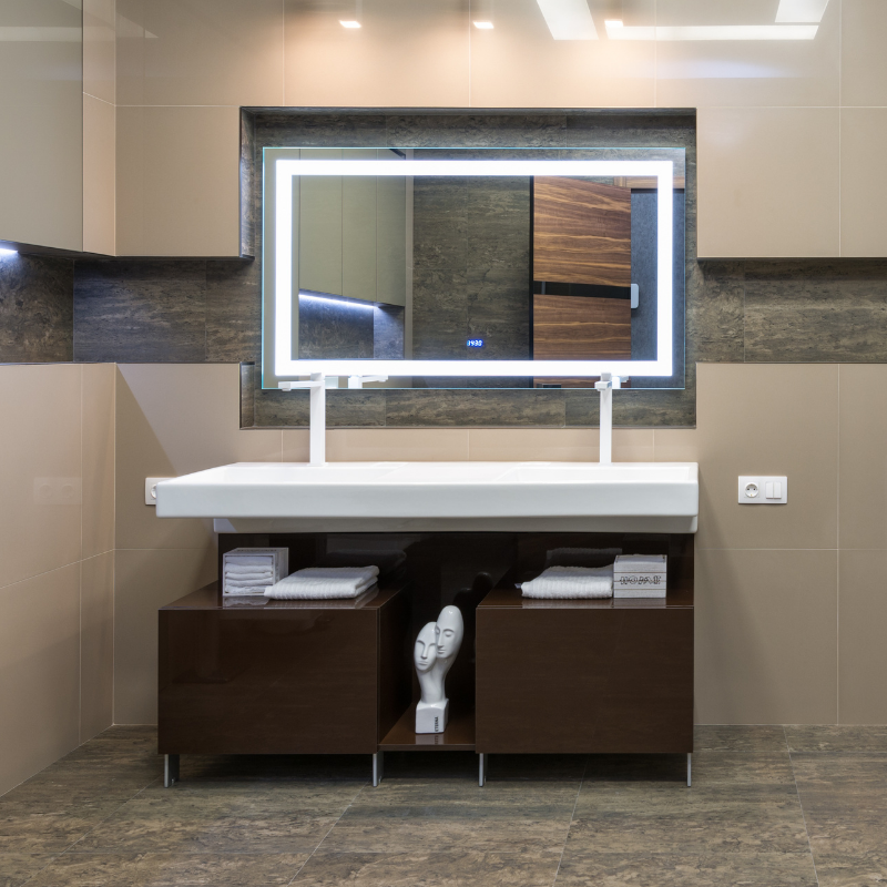 Modern Luxury Hotel-Grade Bathroom Vanity Set Solid Wood Wall Mount with Smart Black Color Artificial Stone MDF Cabinet