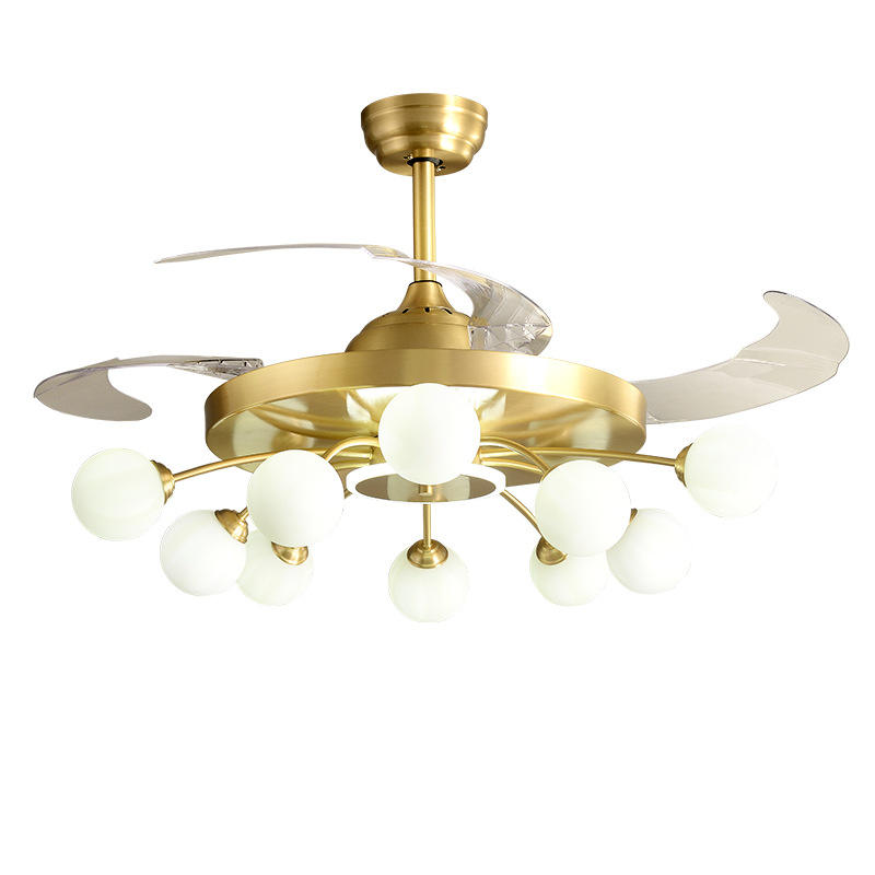 Modern Luxury Inverter Ceiling Fan with 5 Blades Glass Body New Chinese Restaurant Retro Chandelier DC AC Motors for Living Room