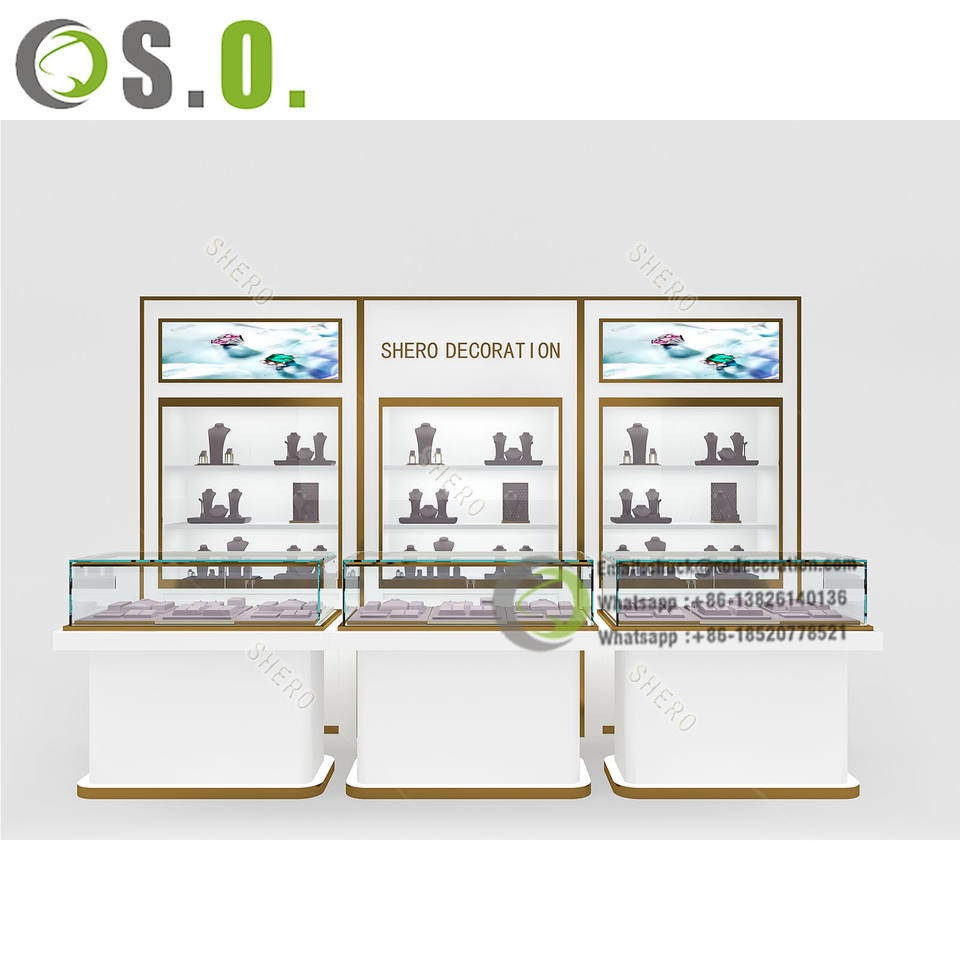 Modern Luxury Jewellery Shop Counter Glass Wood Jewelry Display Design Golden Jewelry Showcase Table