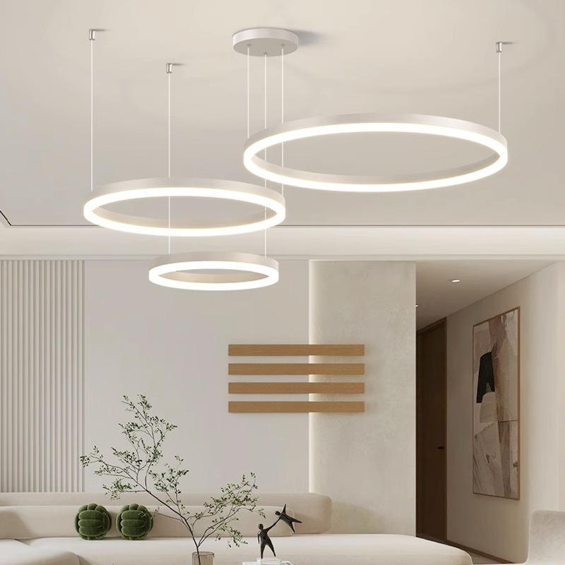 Modern Luxury LED Chandelier Gold Circle Rings Pendant Ceiling Light for Living Room Decor Rectangle/Oval Shape E26 Base AC