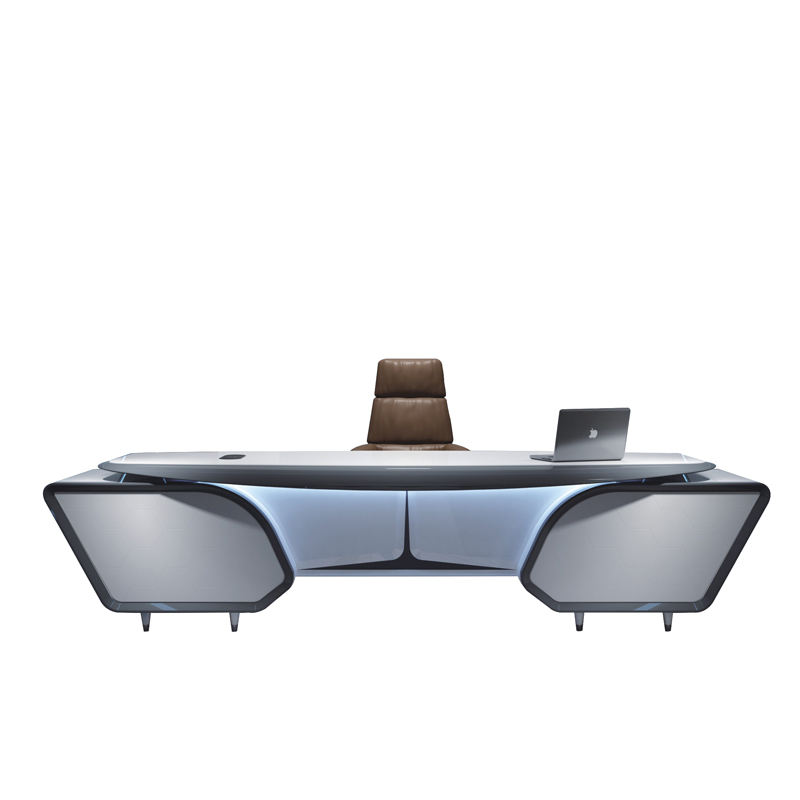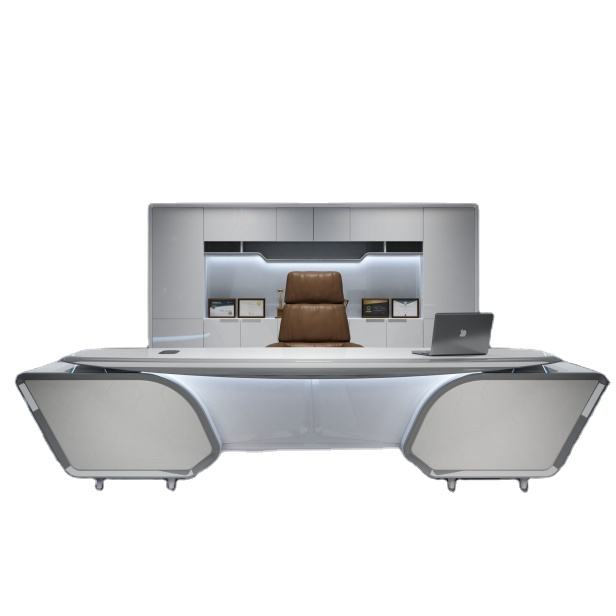 Modern Luxury LED Office Desk L-Shape Glossy White Multi-Function for CEO/Manager/President MDF Material Easy Assembly Hot Sell