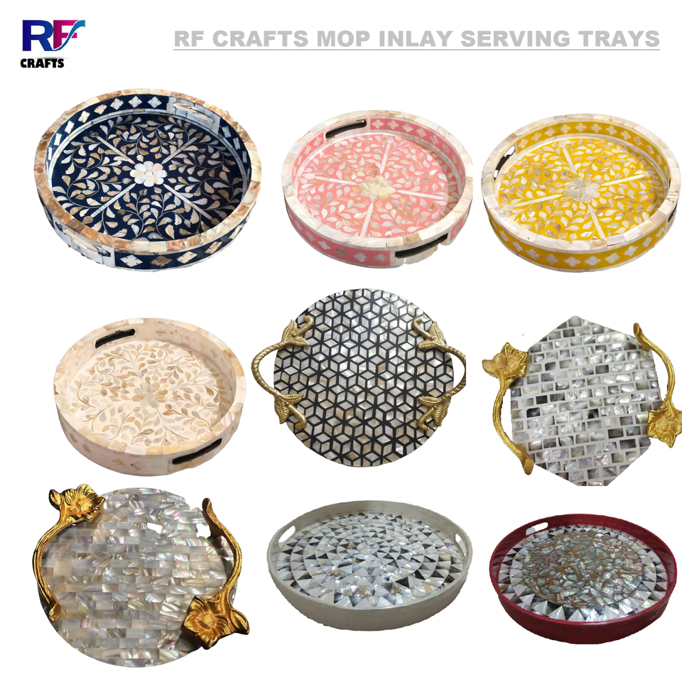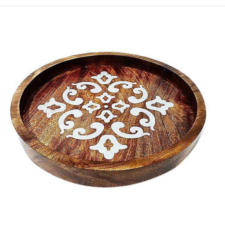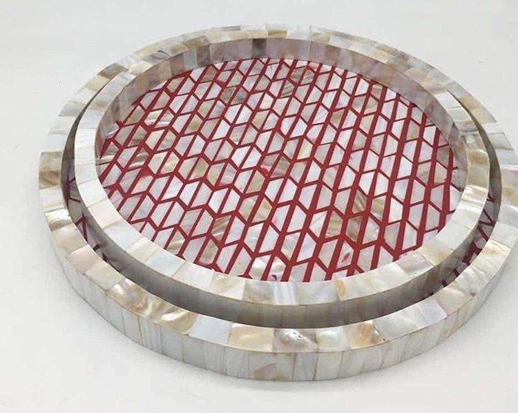 Modern Luxury Large Round Wood Tray Home Use Mother of Pearl Inlay Breakfast Plate Custom Size Serving Food Factory Wholesale