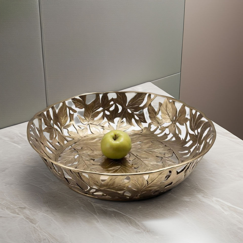 Modern Luxury Leaf Display Bowl Aluminum Serving Tray, Bowl