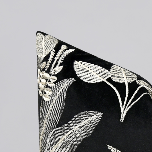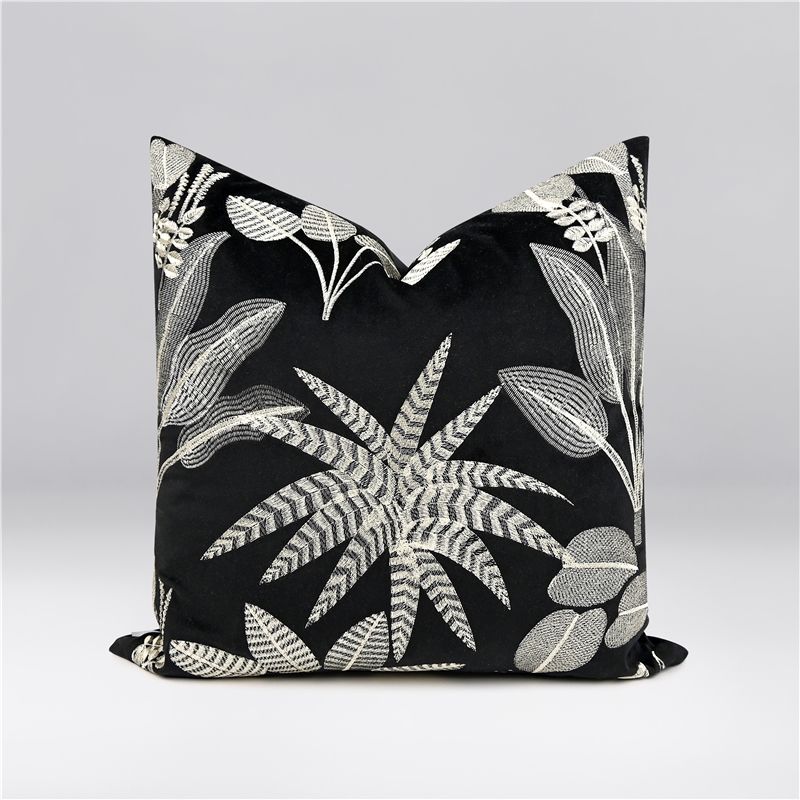 Modern Luxury Living Room Sofa Hug Cushion High-End Black Velvet Embroidery Plant Pillow Anti-Static Decorative Throw Pillows