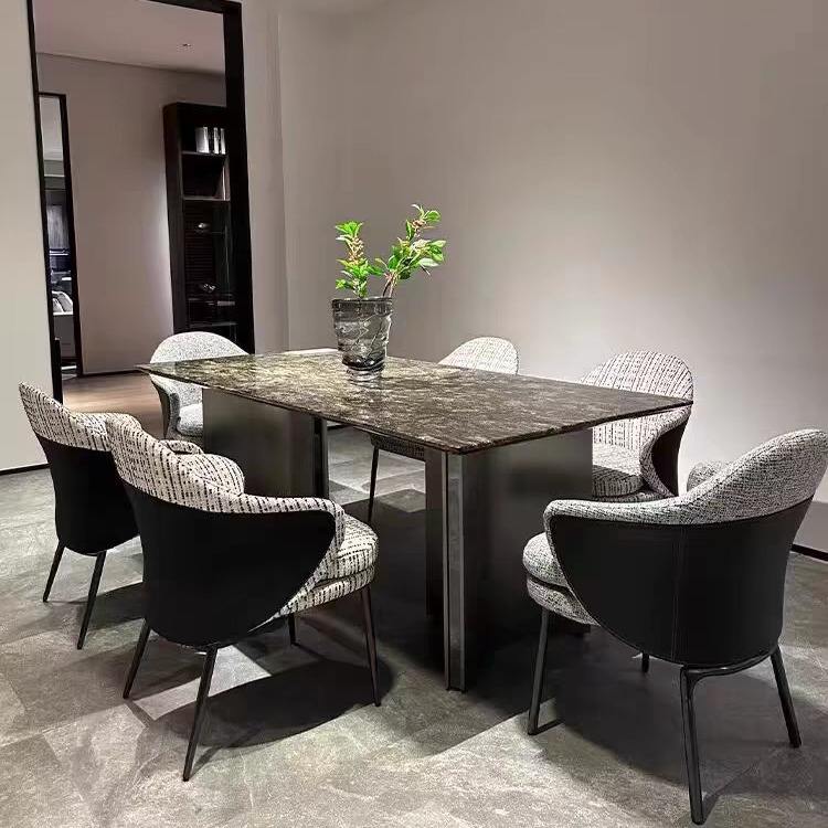 Modern Luxury Marble Rectangular Dining Table And Chairs 6 Piece Set For Dining Room Durable Combination Design