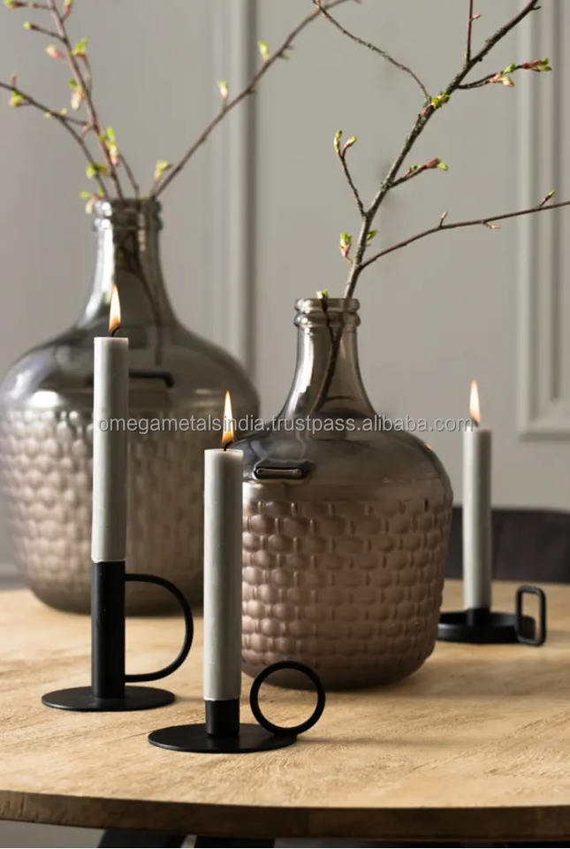 Modern Luxury Matt Black Metal Decorative Candle Holder and Candlestick for Christmas and Weddings Candle PIllar Holder