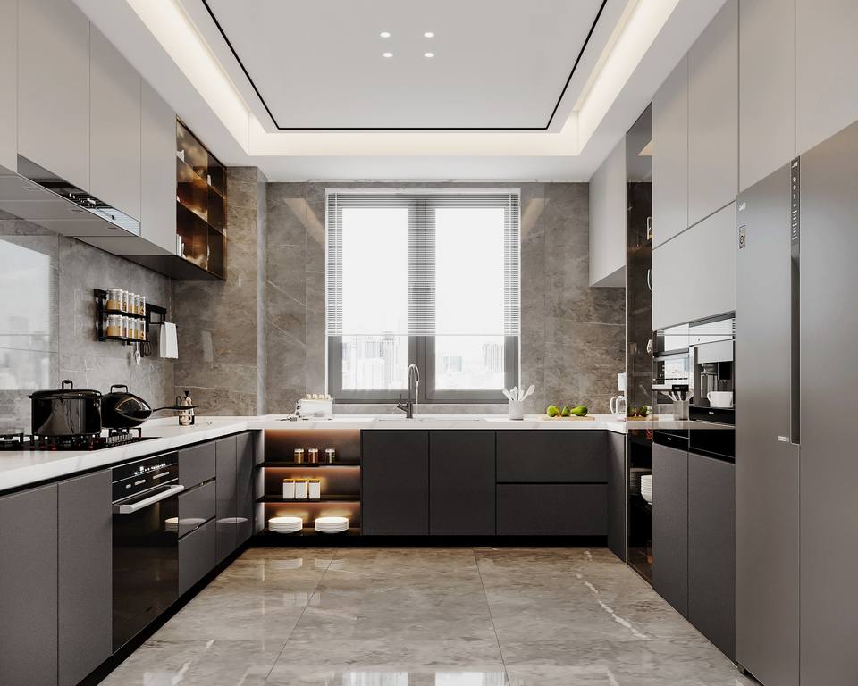 Reno Wotan Modern Kitchen Cabinets 260 cm Matte Stainless Steel & MDF with Melamine Board for Apartment