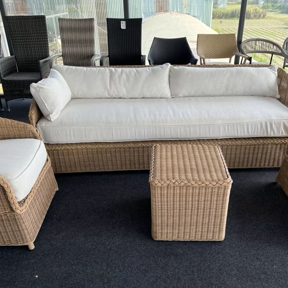 Modern Luxury Outdoor Leisure Rattan Sofa with Acacia Chair Waterproof Sun Protection Patio Living Room Garden Dining Room