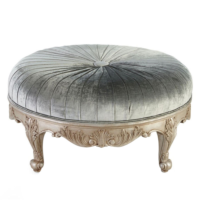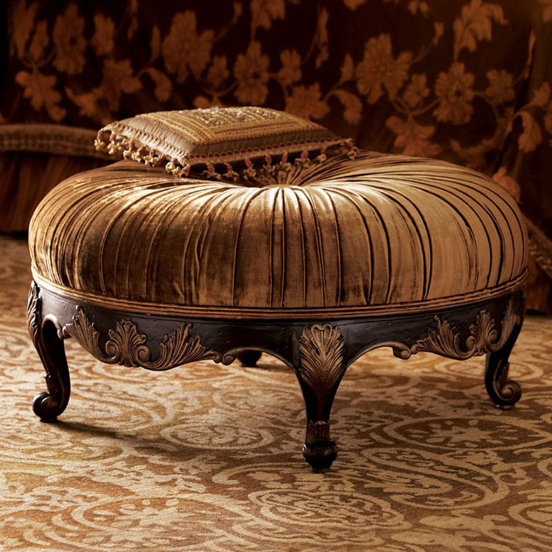 Modern Luxury Round Ottoman Stool Solid Wood with Soft Fabric for Entry School or Apartment Mid for Century Velvet Footstool