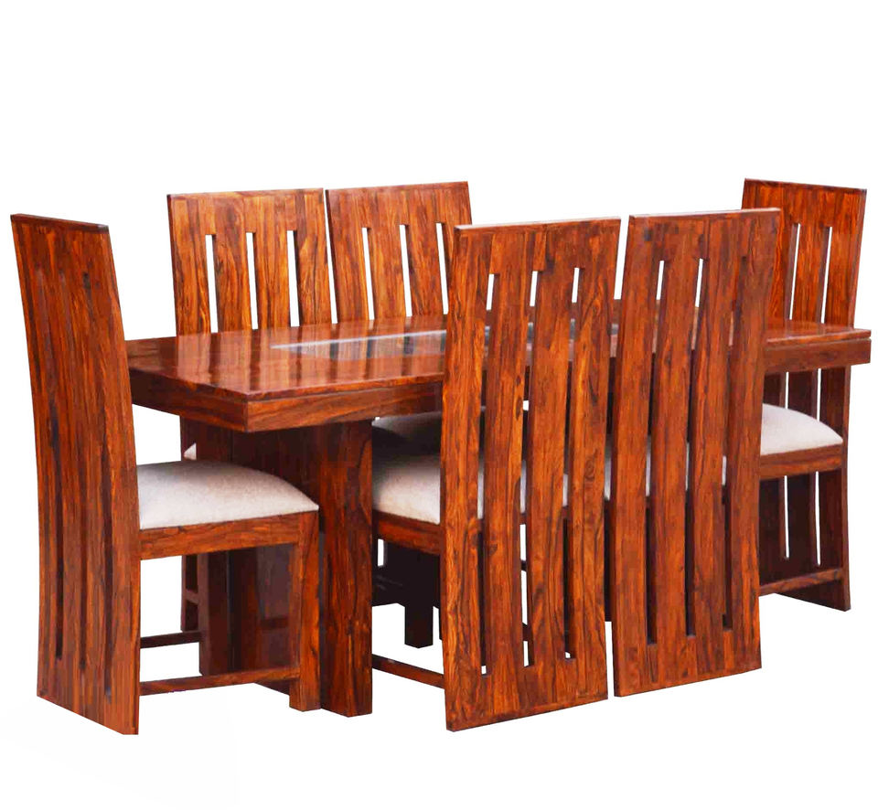 Modern Luxury Royal Solid Teak Wood Dining Table Set with 6 Chairs for Home School Bedroom Bar Hotels Malls and Gyms