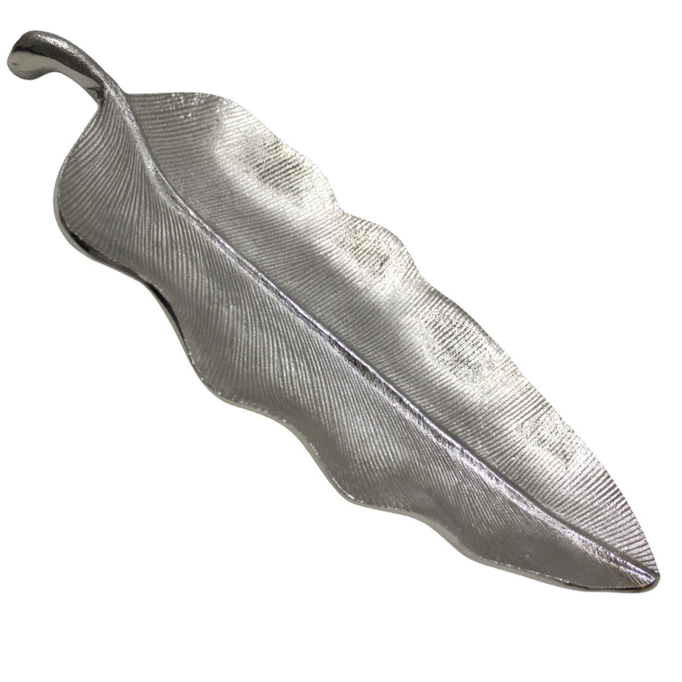 Modern Luxury Shiny Nickel Plated Aluminum Silver Leaf Shape Platter Tray Home Kitchenware Table decor Metal Food Tray