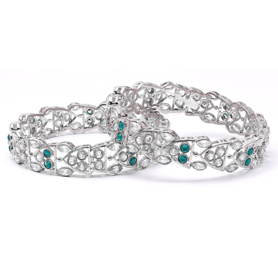 Modern Luxury Silver Plated Reverse AD Rhodium Bangles Sets Ethnic Style Brass Bangles for Weddings