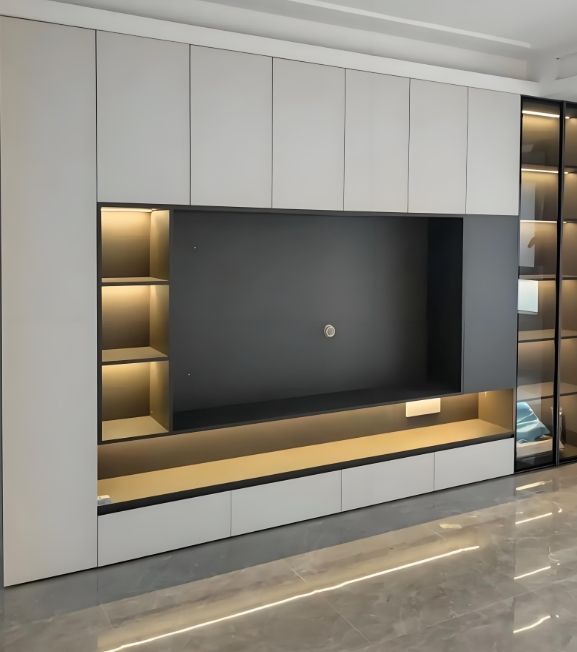 Modern Luxury Solid Wood TV Stand Simple Design Wall-Mounted Unit for Home Dining Bedroom Hotel with Full Wall Storage