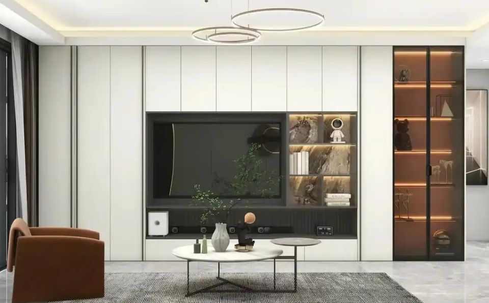 Modern Luxury Solid Wood TV Stand Full Wall Storage Simple Design Wall Mounted Unit for Home Dining Bedroom or Hotel Use