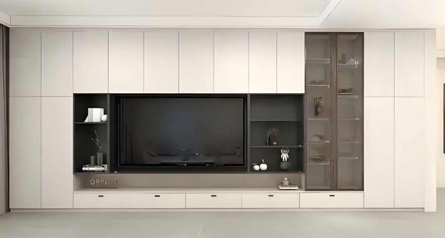 Modern Luxury Solid Wood TV Stand Full Wall Storage Simple Design Wall Mounted Unit for Home Dining Bedroom or Hotel Use