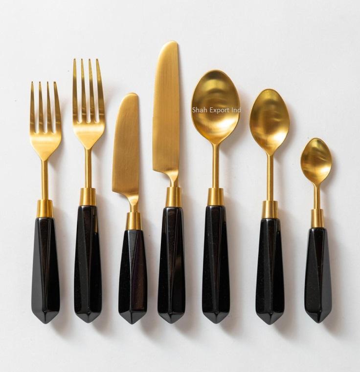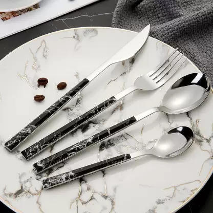 Modern Luxury Stainless Steel Cutlery Set with Black Marble Handle Silver Plated for Wedding Home & Restaurant Tabletop Use