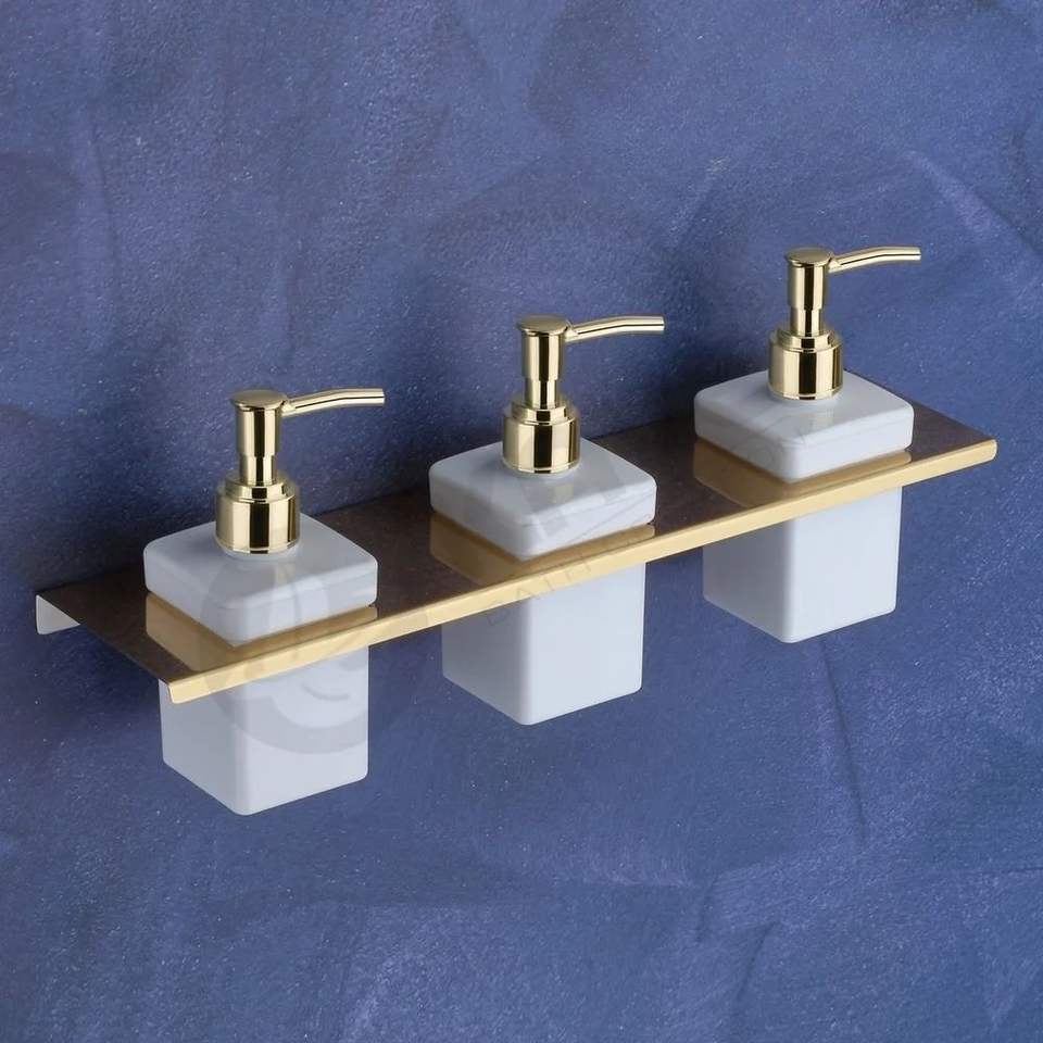 Modern Luxury Stainless Steel Triple Liquid Soap Dispenser Gold PVD Wall Mounted for Bathroom Kitchen Home Office Durable