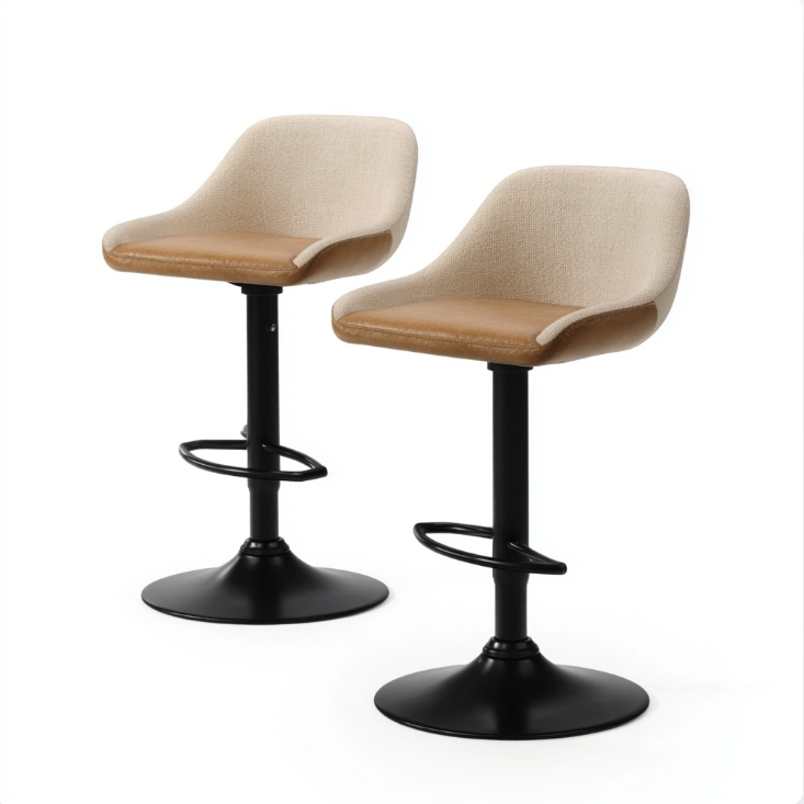 Modern Luxury Swivel Bar Stool Adjustable High Chair with Stylish Iron Backrest for Home Kitchen Counter Café Bar Living Room