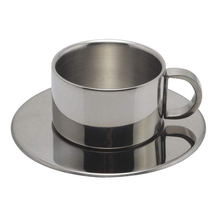 Modern Luxury Tea Cup & Saucer Set High-Grade Double Wall Stainless Steel Silver & Gold Plated Finish