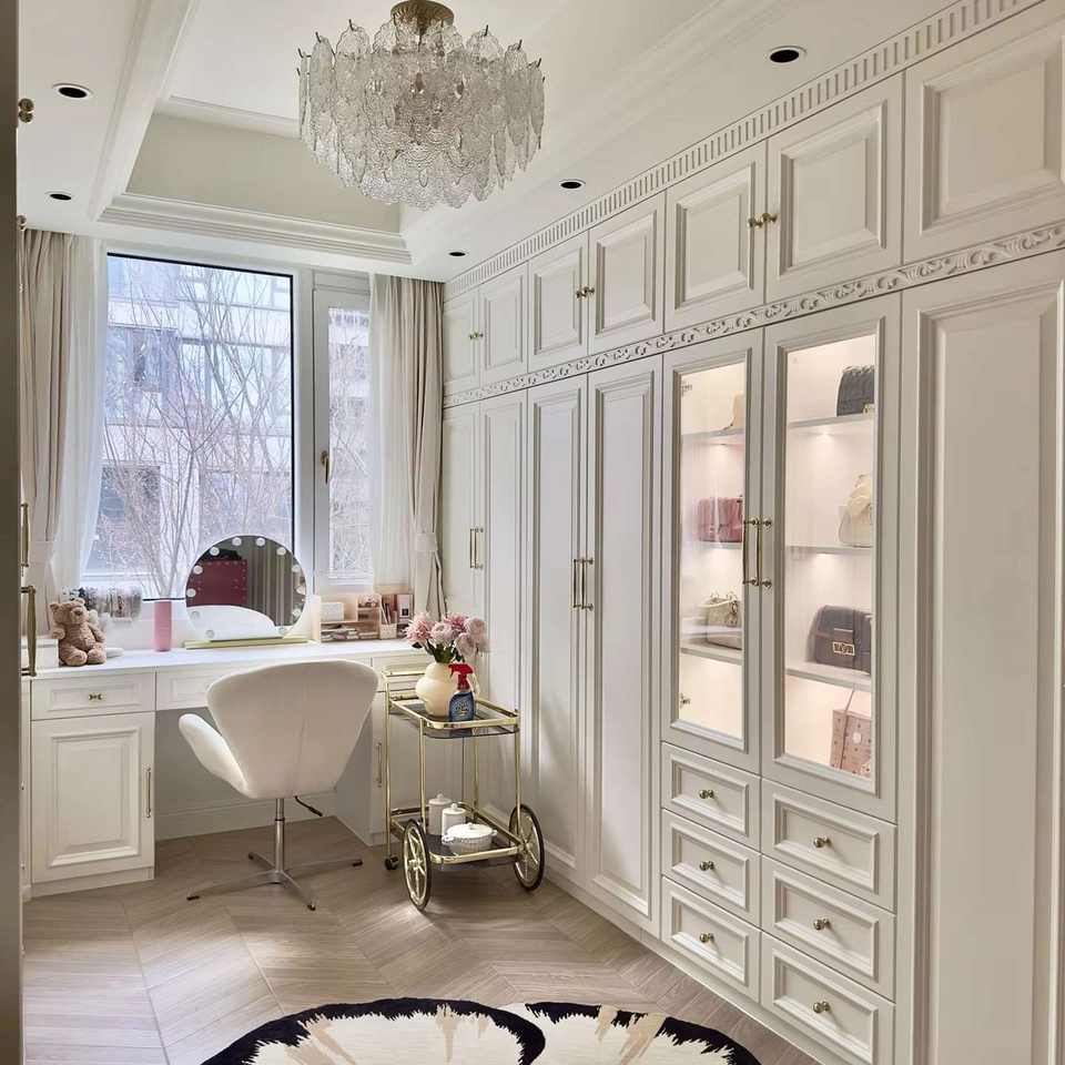 Modern Luxury Villa Home Wood Bedroom Furniture Custom French Style Solid Wood Wardrobe Closets