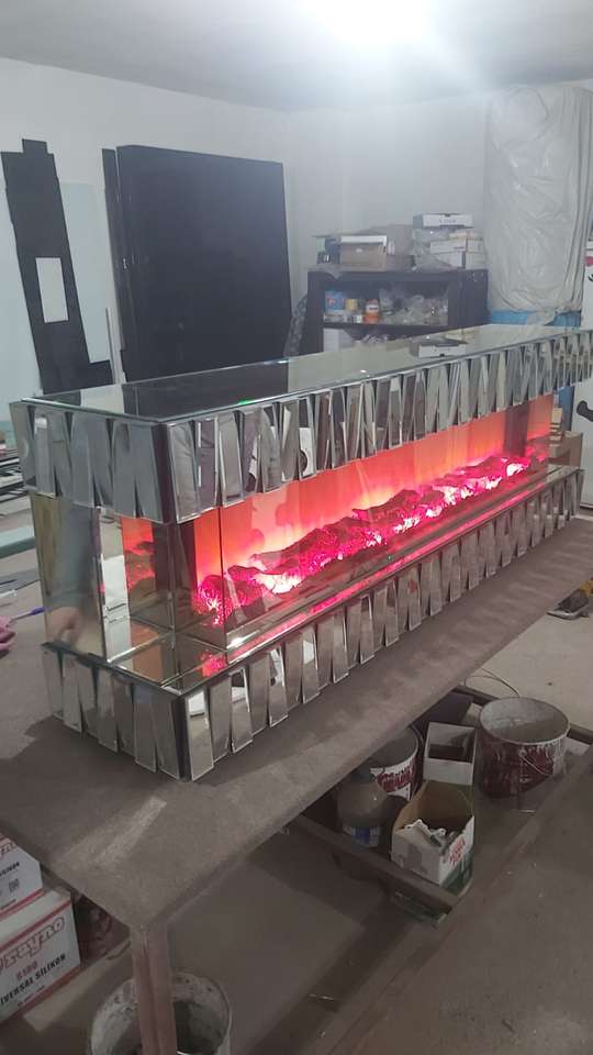 Modern Luxury Wooden Gold Electronic Fireplace TV Stand with Bluetooth Connection