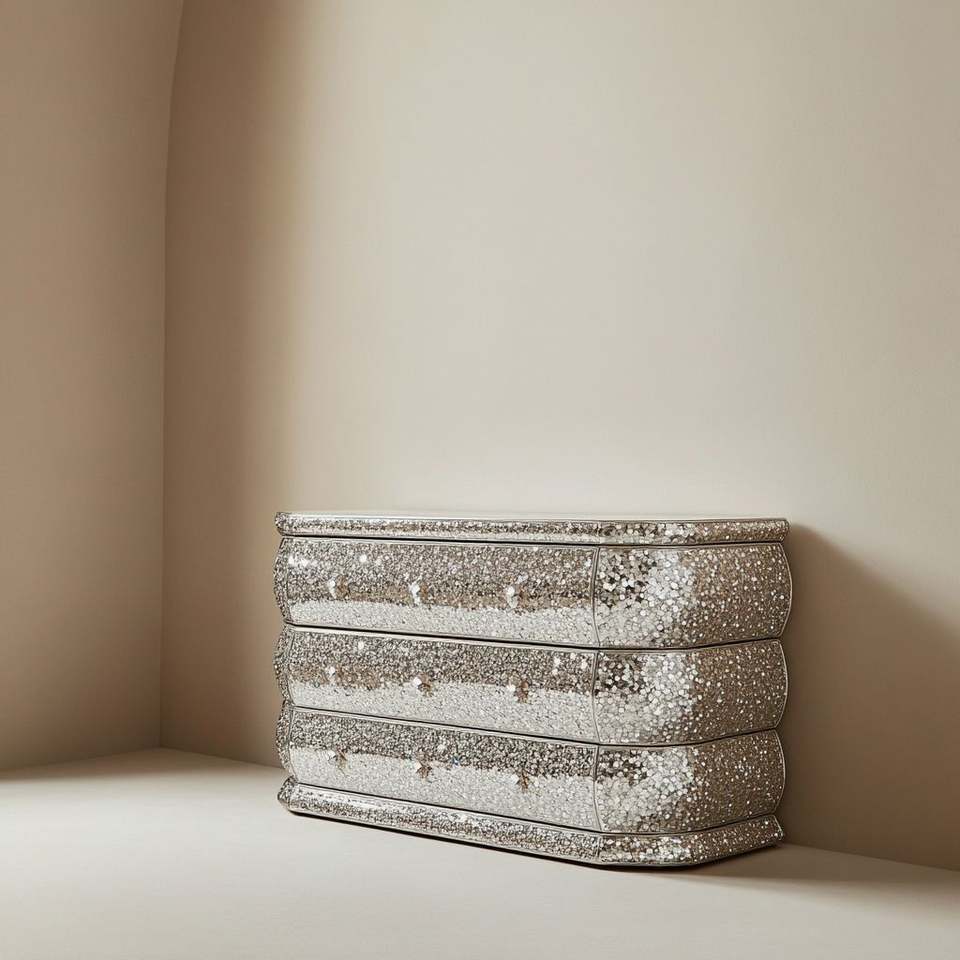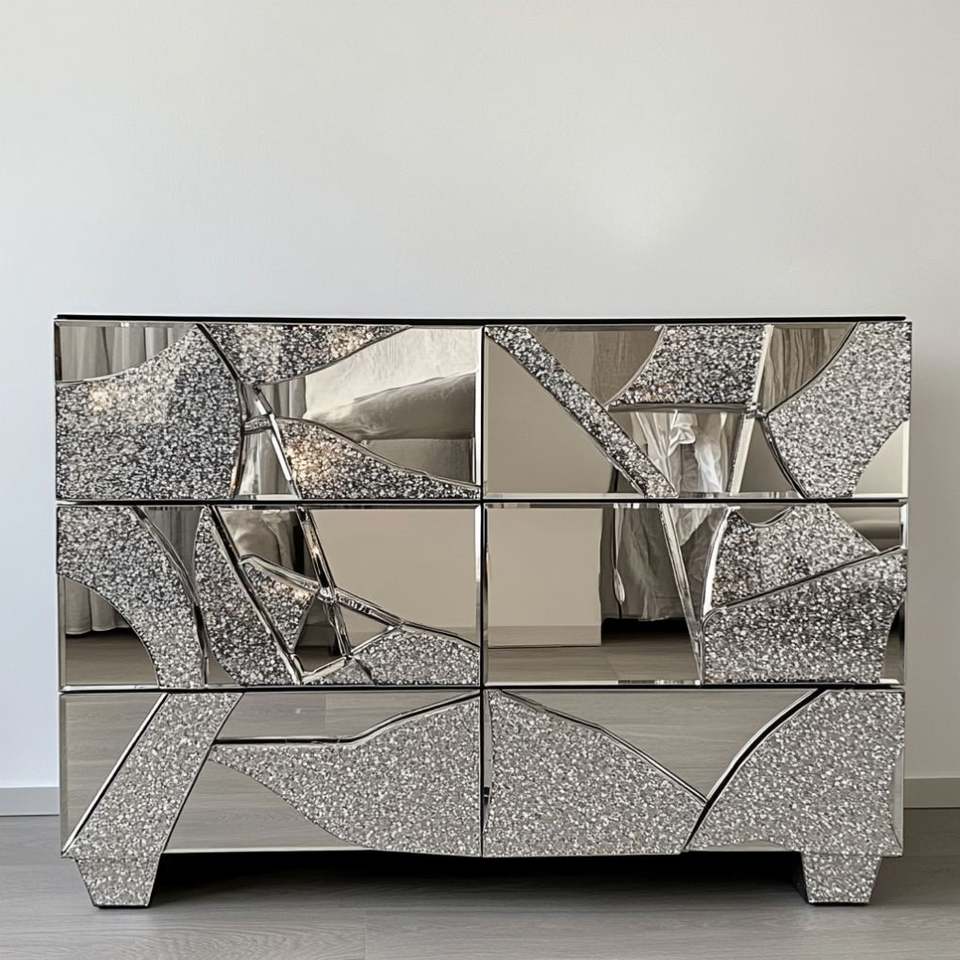 Modern Luxury Wooden Living Room TV Stand with Storage Function Crystal Diamond Mirrored Cabinet for Home Hotel