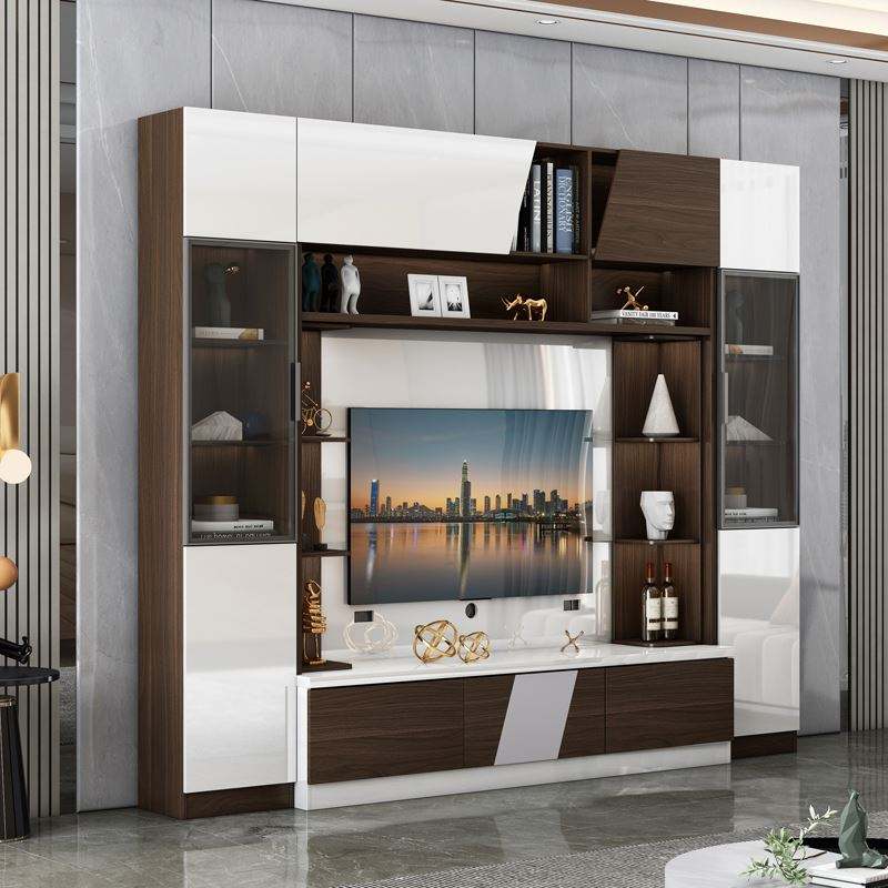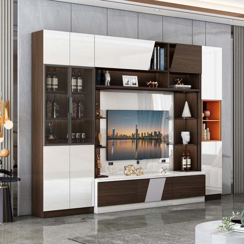 Modern Luxury Wooden TV Cabinet with LED Wall-Mounted Design for Apartment Living Room Furniture