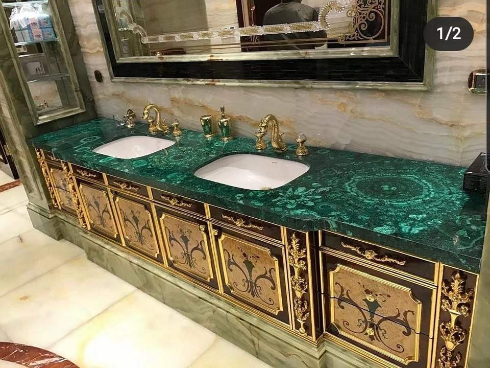Modern Malachite Semi-Precious Gemstone Pen Stand Natural Stone for Home Living Room or Table Top for Countertops