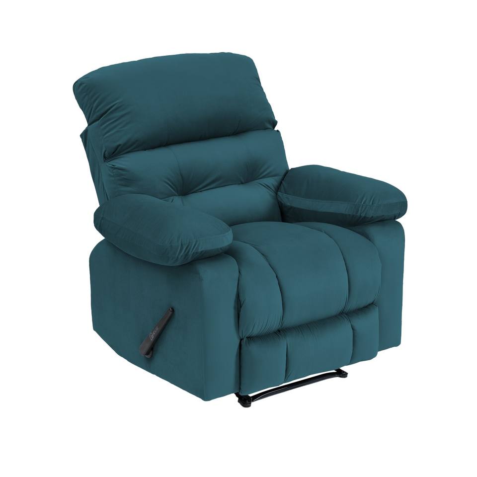 Modern Manual Linen Fabric Recliner Chair Dark Turquoise Velvet Rocking & Rotating with Massage Feature for Home or Bedroom