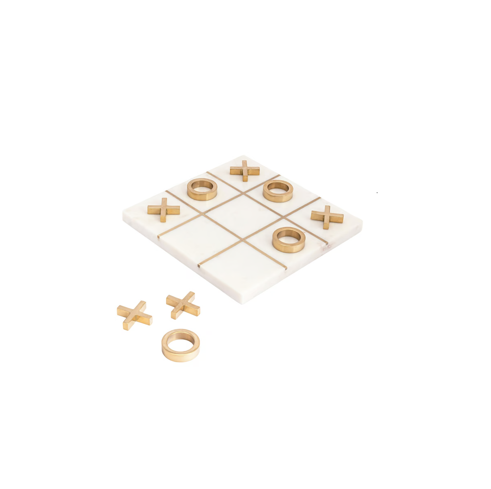 Modern Marble Tic Tac Toe for Home Decoration White Marble and Gold Color for at Best Price
