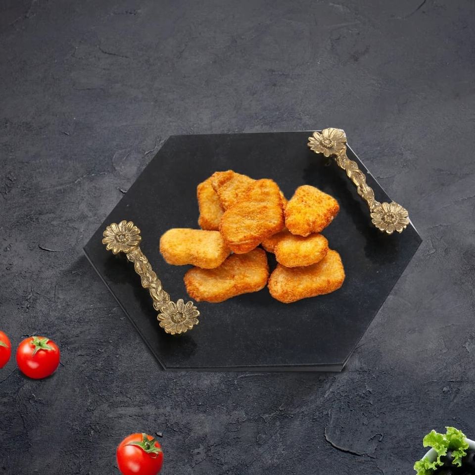 Latest New Wholesale Luxury Home Use Rectangle White Marble Serving Tray with Elegant Brass Handles High Demand