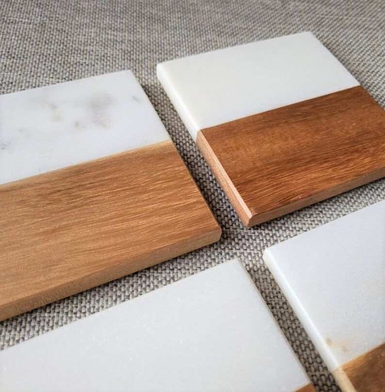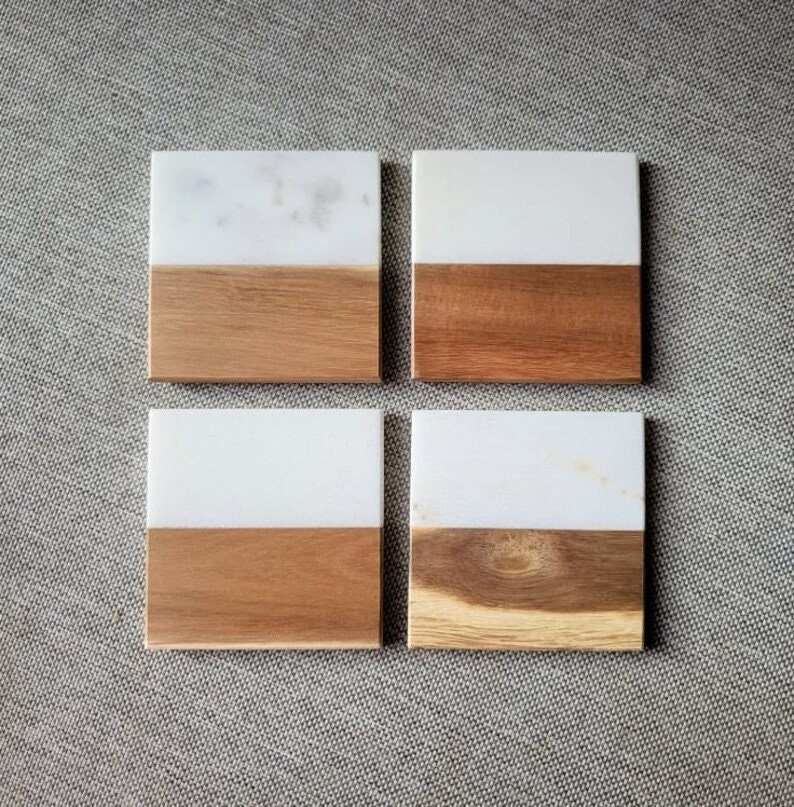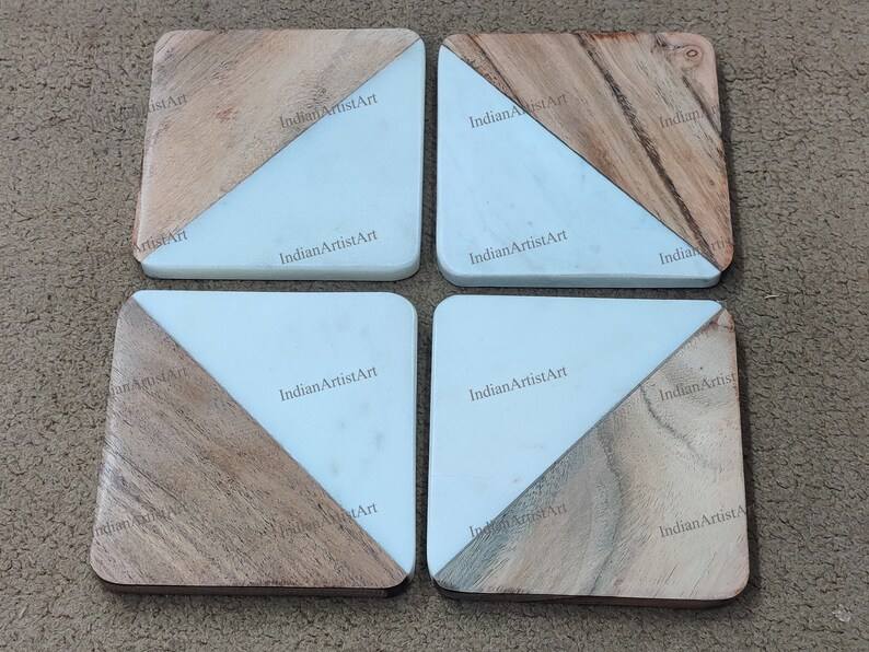 Modern Durable Polished Marble Wooden Customized Coasters Elegant Drink Set Coffee Tea Bar Table Decor Wedding Promotional
