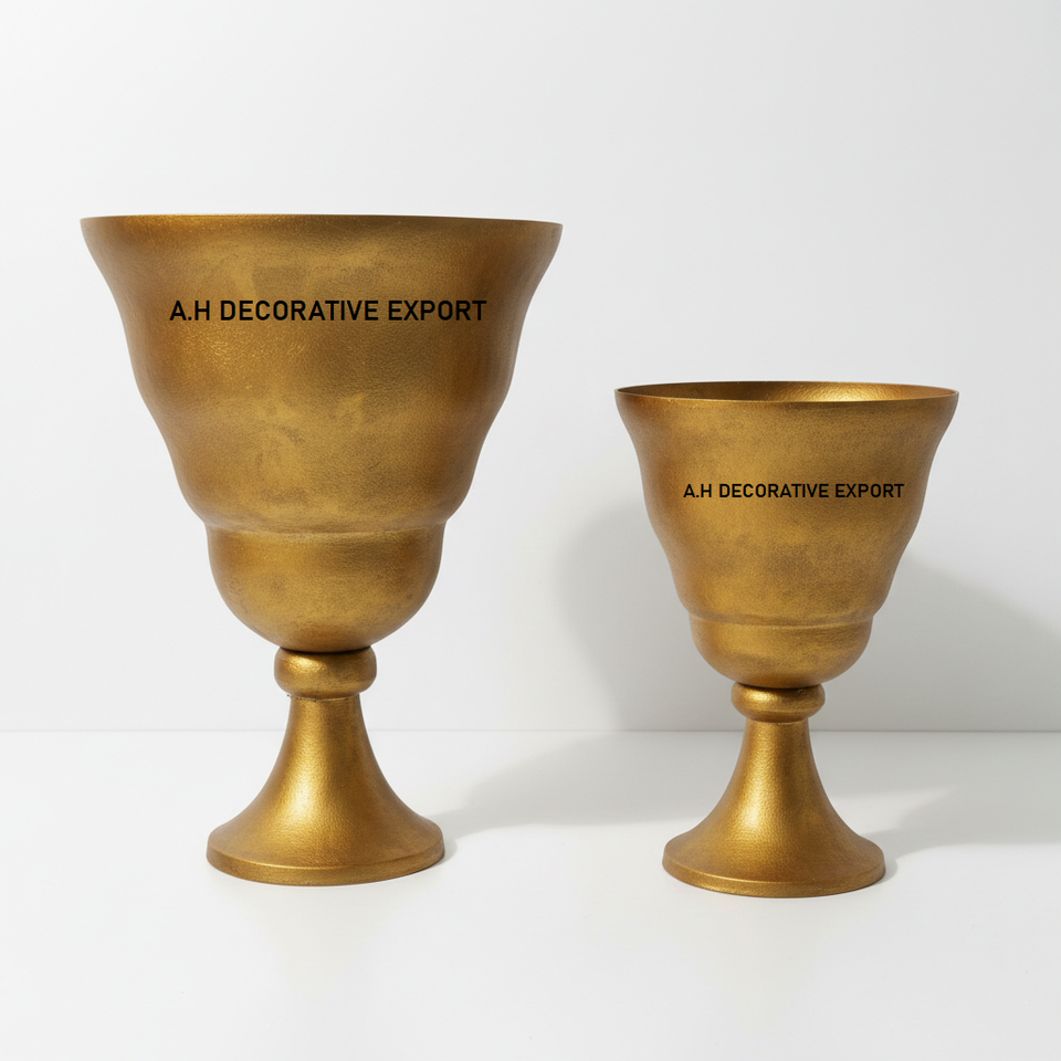 Modern Chrome Plated Aluminum Chalice Planter | American Style Pedestal Pot for Garden Home | Eco-Friendly Black Urn Flower