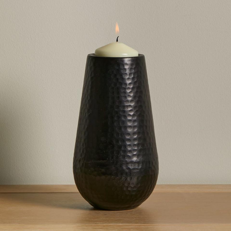 Modern Matte Black Hammered Metal Pillar Candle Holder Tall Tapered Votive Stand Decorative Centerpiece For Home Decor & Gift