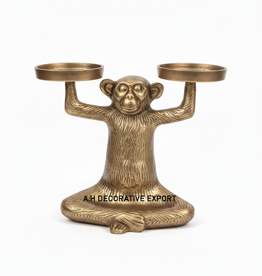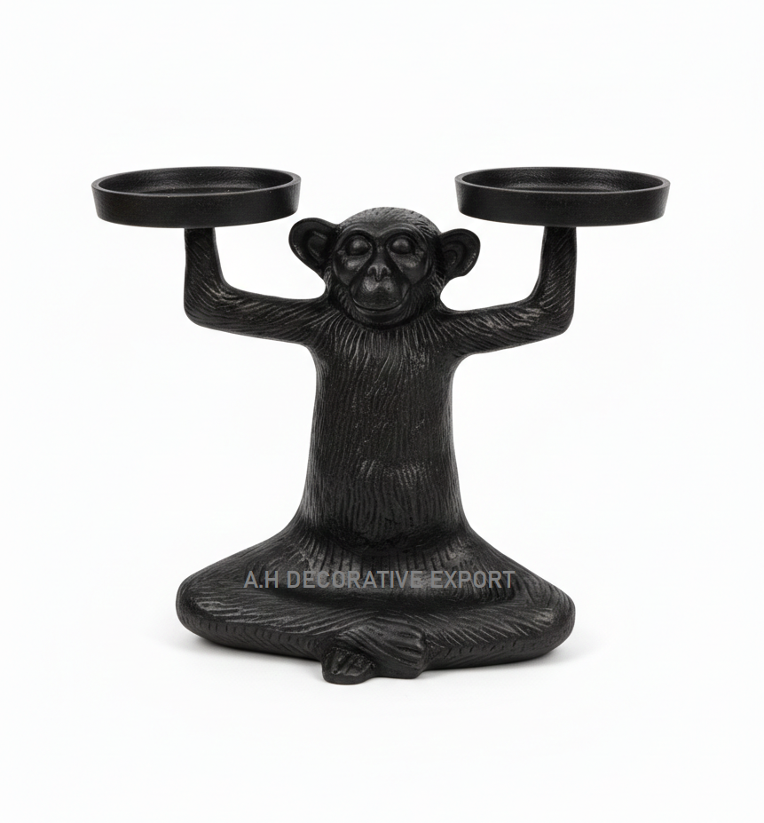 Modern Matte Black Monkey Candle Holder | Gothic Zen Yoga Ape T-Light Stand | Black Metal Meditating Monkey Candelabra Christmas
