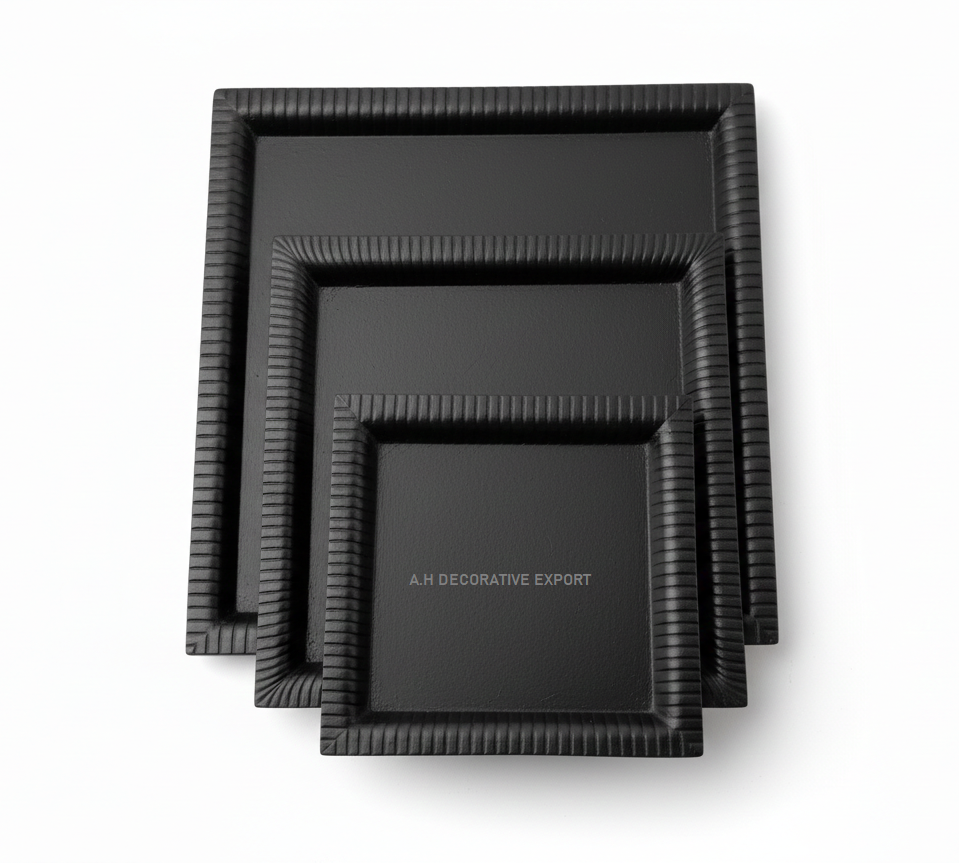 Modern Matte Black Tray | Minimalist Industrial Style Handmade Powder Coated Custom Size Deluxe Grade Trays | Home Restaurant