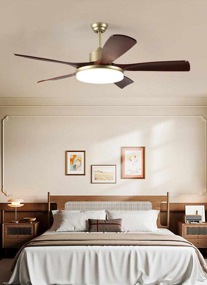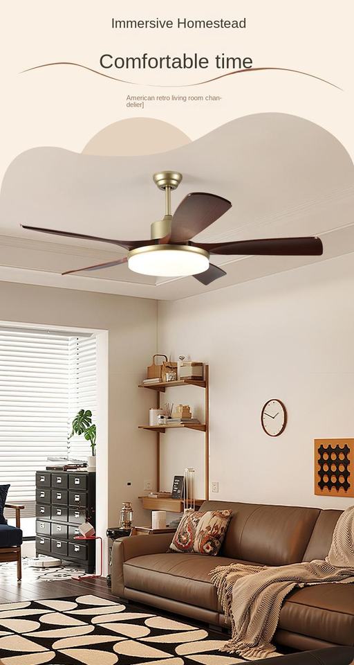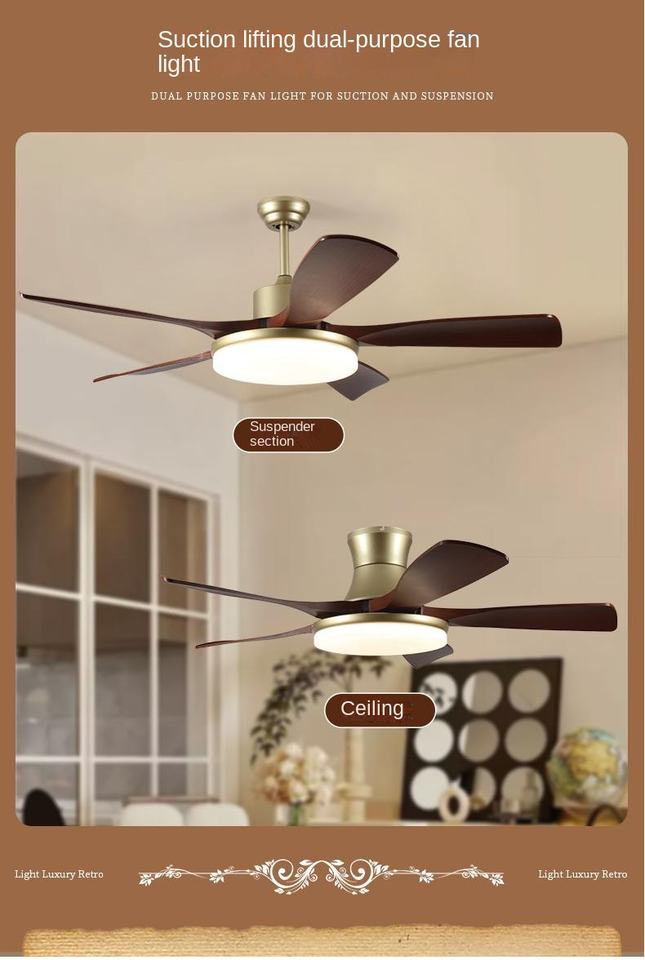 Modern Medieval Walnut Retro Ceiling Fan Lamp for Living Room Variable Frequency Simple Fan Chandelier for Household Use