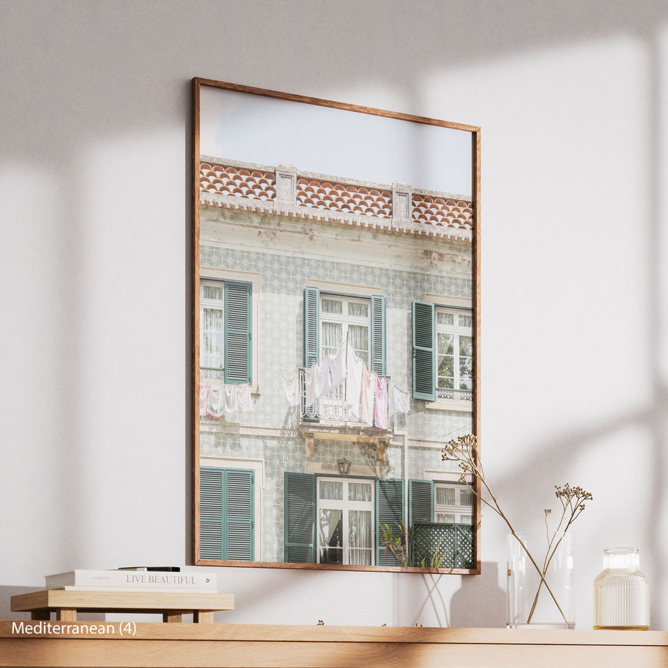 Modern Mediterranean Houses Clipart Premium Canvas Wall Art with Wood Frame