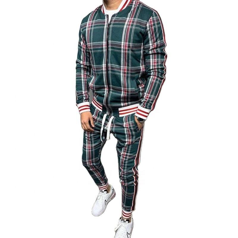 Modern Men's Check Print Sublimated Bomber Jacket Track Suit Zip Enclosure Ribbed Hem & Cuffs Side Stripe Zipper Sweat Suit